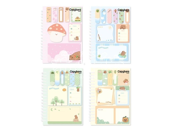 Bloček samolepicí capybara se spirálou set 105x145mm 30l+ 50x50mm+35x50mm+87x46mm 20l