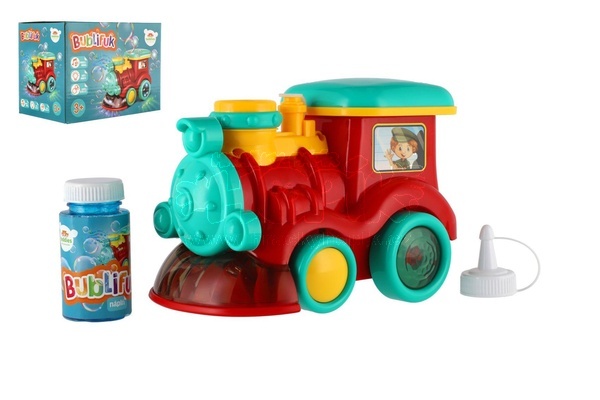 Bublifuk lokomotiva + náplň plast 18cm na baterie se zvukem se světlem v krabičce 19x14x11,5cm