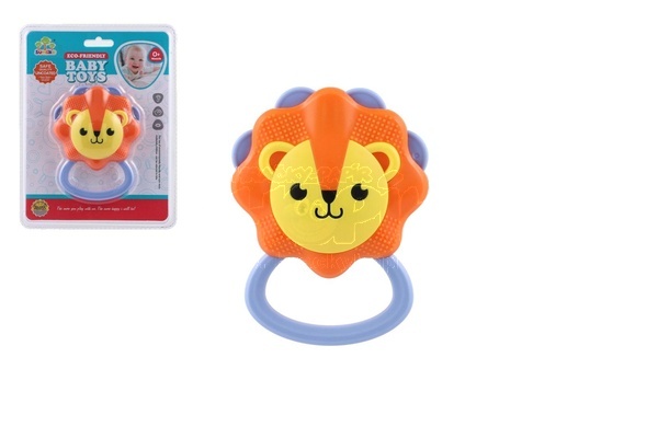 Chrastítko lev plast 9x11cm na kartě 0m+