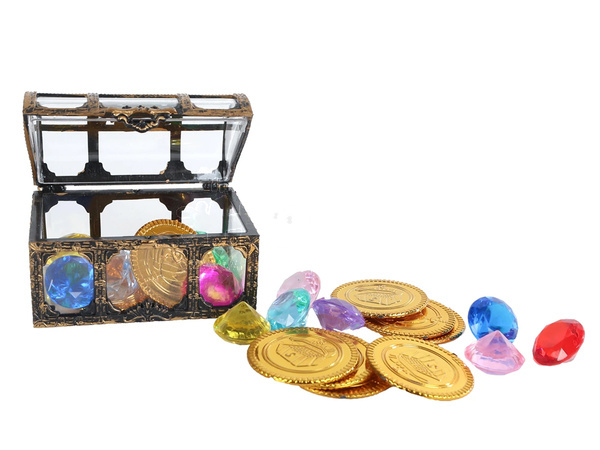 Detailní popis Destination Deep truhla 7,5cm s pokladem 12ks zlatých mincí a 12ks diamantů