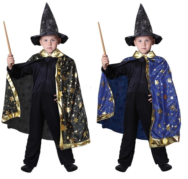 Parametry Dětský čarodějnický kouzelnický plášť s hvězdami černý