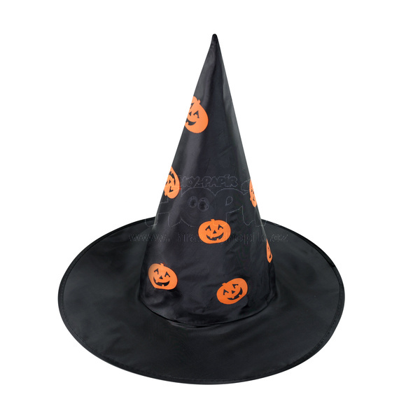 Úžasný čarodějnický klobouk v černé barvě s potiskem oranžových dýní. Ideální na halloweenský večírek, karneval nebo Halloween! Detailní informace
