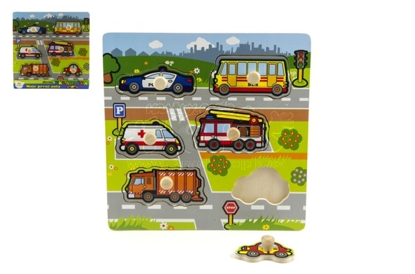 Dřevěná vkládačka Moje první auta pro děti od 12 měsíců. Jednotlivá autíčka se vkládají do obrysů na dřevěné desce. Skvělá hračka pro rozvoj motoriky a myšlení u nejmenších dětí. Obsahuje 6 dílků, každý dílek je opatřen dřevěnou úchytkou pro lepší uchopení.