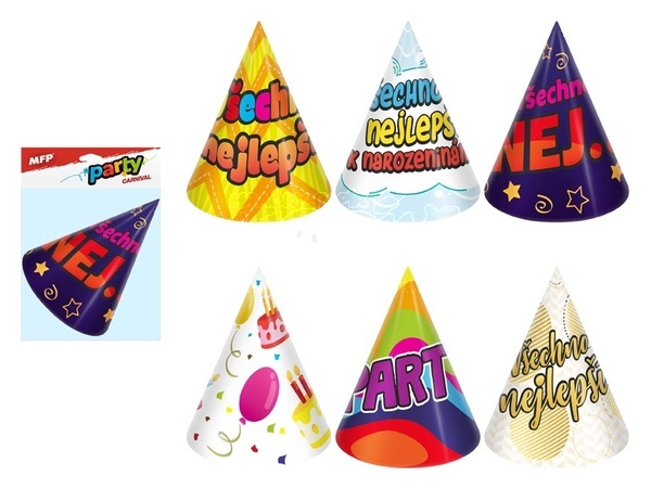 Klobouček karnevalový 6ks 16cm papírový mix 6