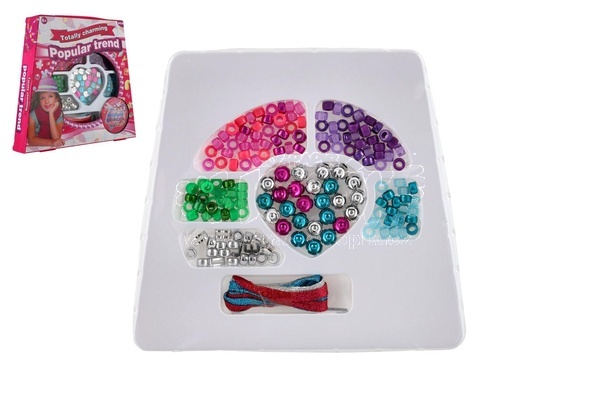 Korálky plastové barevné mix se šňůrkou v krabičce 24x21x4cm
