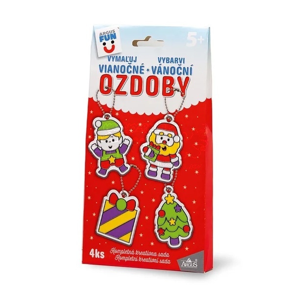 Kreativní tvoření - vánoční postavičky vymalované s barvami na sklo. Vhodné na zavěšení na stromeček, dětem do okna nebo kdekoliv v pokojíku na vytvoření vánoční atmosféry. Kreativní sada obsahuje: * 4 ks akrylové figurky s prohloubenou částí pro nanášení barev s černou ohraničující linkou, výška figurky 7-8 cm * 4 ks kuličkové kovové šňůrky s rychlospojkou * 4 ks barev na sklo * vhodné pro děti od 4 let * podporuje zručnost dítěte a vytváří příjemnou předvánoční atmosféru v hrátkách s dětmiParametry Kreativní sada Vybarvi vánoční ozdoby Skřítek