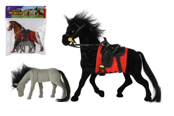Kůň fliška 23cm se sedlem s hříbětem 3 barvy v sáčku