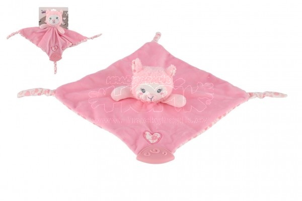 Lama usínáček kousátko chrastítko plyš 25x25cm růžové na kartě v sáčku 0+