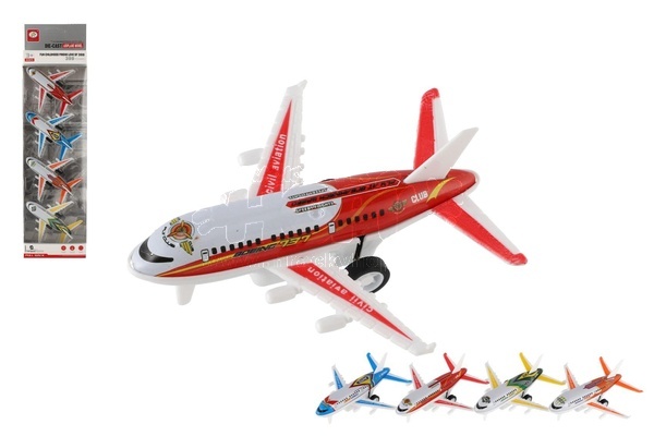 Letadlo osobní 4ks kov/plast 9,5cm na zpětné natažení 2 barvy v krabičce 10x36,5x4cm