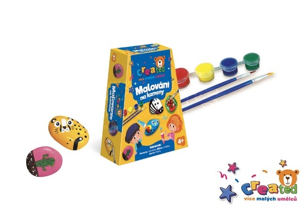 Malování na kameny/oblázky s barvami se štětci created v krabičce 19x14x5cm