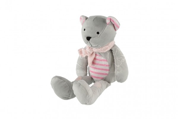 Medvěd/Medvídek sedící se šálou plyš 19cm šedivo-růžový v sáčku 0+