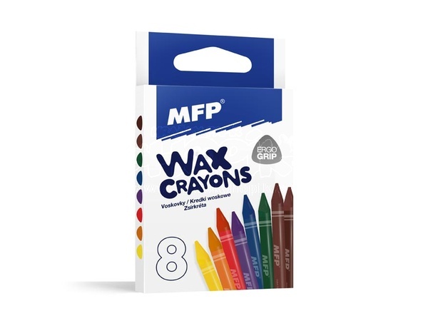 Set 8ks barevných voskovek. Trojhranný ergonomický tvar usnadňuje Dětem správné držení. Snadno vypratelné z většiny textilií. Voskovky jsou balené v papírové krabičce. Detailní informace