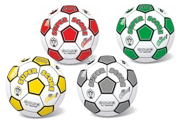 Míč fotbalový 23 cm nafouknutý 4 barvy v síťce