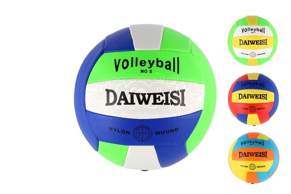 Míč volejbalový nafouknutý šitý 20cm 4 barvy v síťce v sáčku