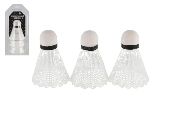 Míčky/Košíčky na badminton bílé 3ks plast v blistru 11x22cm