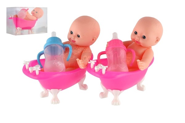 Detailní popis Miminko ve vaničce guma/plast s lahvičkou 10cm v plastové krabičce 13x9x6,5cm