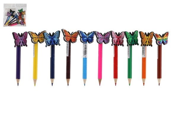 Detailní popis Ozdoba na tužku motýl/motýlek + pastelka plast/dřevo mix druhů 10ks v sáčku