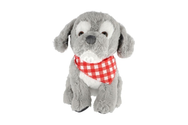Pes/Pejsek sedící se šátkem plyš 26cm šedivý v sáčku 0+