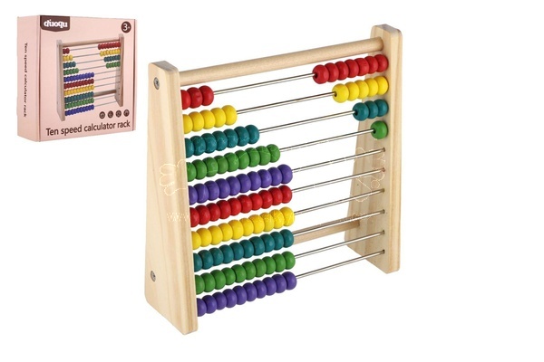 Počítadlo 100 kuliček dřevo 18x18cm v krabici 20x19,5x7cm