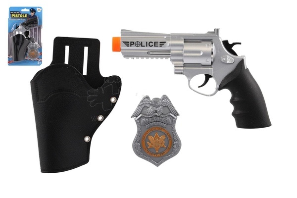Úvod Výběr hraček dle zvoleného parametru Policejní pistole klapací 20 cm v pouzdru s odznakem plast na kartě
