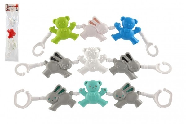 Řetěz Zábrana na kočárek medvěd zajíc plast 43cm