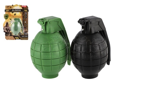 Ruční granát plast 10cm na baterie se zvukem se světlem 2 barvy na kartě