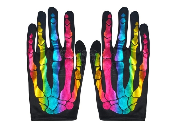 Oživte svůj kostým! Zářivé rukavice s potiskem kostí v duhových barvách dodají vašemu převleku originální šmrnc. Jsou ideální na Halloween, karneval, maškarní večírky nebo tematické párty. Díky elastickému materiálu skvěle padnou a jsou pohodlné i při delším nošení. Zaujměte svým vzhledem – ať už jdete strašit, nebo se jen bavit. Balení: 1 pár Barva: černá, duhový potisk Velikost: univerzální (22 cm) Materiál: polyester s elastanem Upozornění: Nevhodné pro děti do 3 let (obsahuje malé části). Uvedená cena je za 1 pár. Hmotnost: 0.02 kg Varování: Dekorace. Není hračka!Parametry Rukavice kostra 22cm barevné