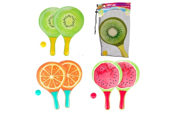 Sada na plážový tenis ovoce dřevěné 38cm 2 pálky + 1 míček 3 druhy v látkovém sáčku