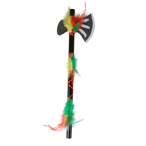 Karnevalová indiánská sekera s peřím. Sekera je vyrobena z PVC a je zdobena barevnými prvky. Skvělý doplněk ke karnevalovému kostýmu!