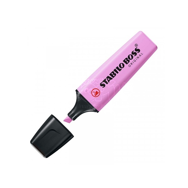 Kvalitní zvýrazňovač Stabilo Boss originál v pastelově růžové barvě, má jedinečný design a ikonické fluorescenční barvy. Dobře sedí v ruce. Díky technologii Stabilo Anti-Dry-Out vydrží bez víčka až 4 hodiny a nevyschne. Jeho náplň je na vodní bázi a je zdraví zcela neškodná.