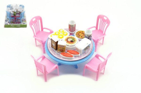 Detailní popis Stůl a židle s doplňky plastové různé druhy