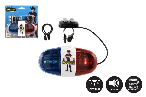 Díky policejnímu světlu budou děti na kole pořádně vidět a díky siréně i slyšet. Siréna má 4 melodie, které se zapínají tlačítky. Siréna je pro použití venku, nepřikládejte k uchu. Světlo je na baterie 2 x AA 1,5V - nejsou součástí balení.