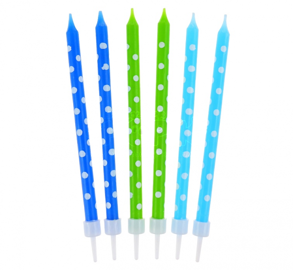 Svíčky dortové 10cm 3x6 barev modro-zelené 24ks chlapci